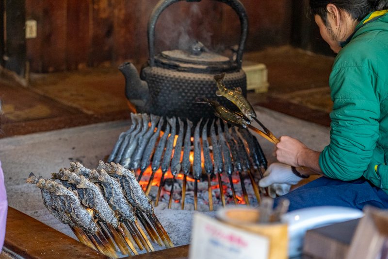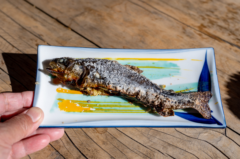 嘉門次小屋で絶品名物「岩魚の塩焼き」だ