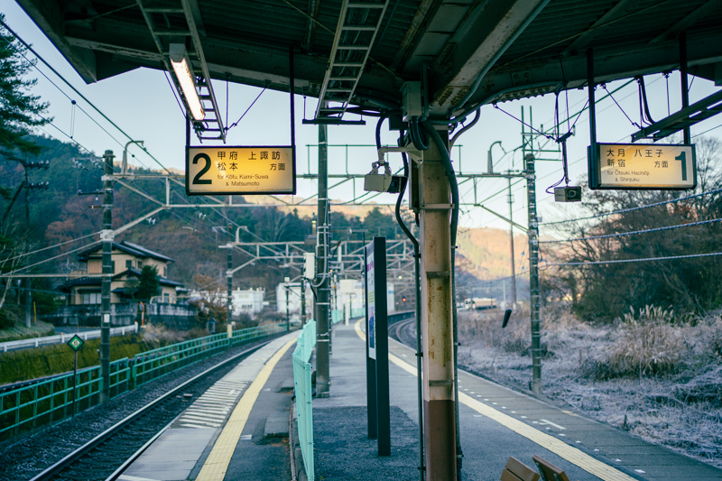 07時15分、山間の底にある駅は凍てついて