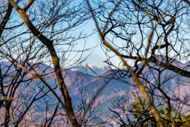 その踏み後を追うと、なるほど樹林の合間から南ア辺りが見えるぞ