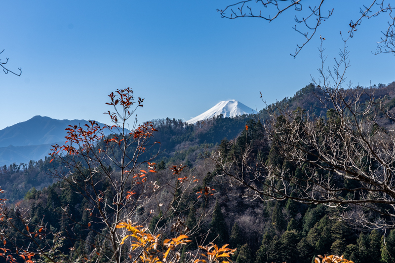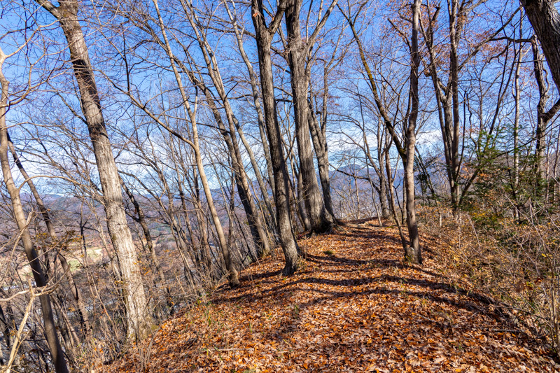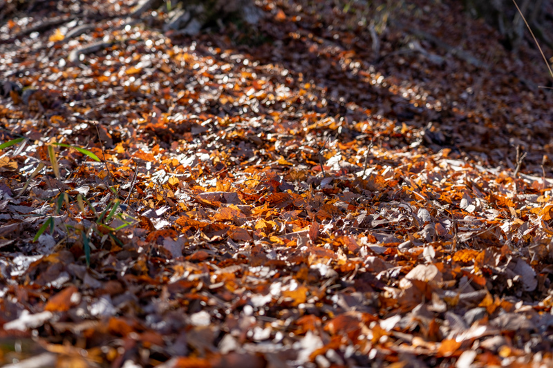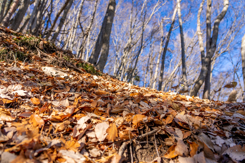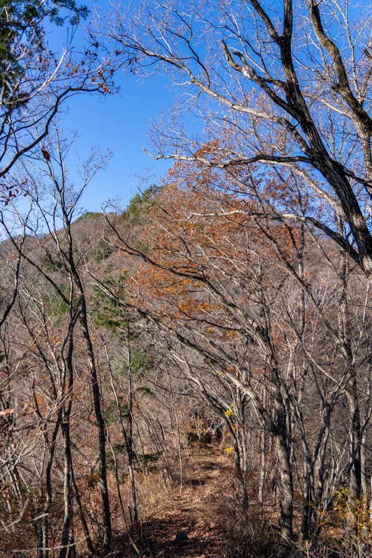 激下りはすぐに終わると、天神峠まで晩秋の香りが残るトレイル