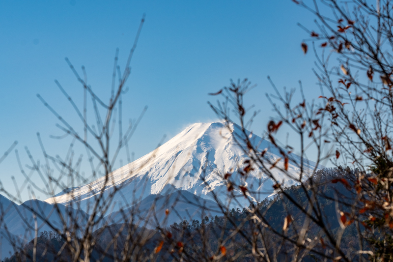 雪煙舞う富士の高嶺
