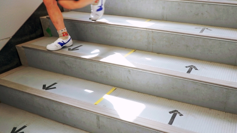 右側通行であることを示す廊下の矢印