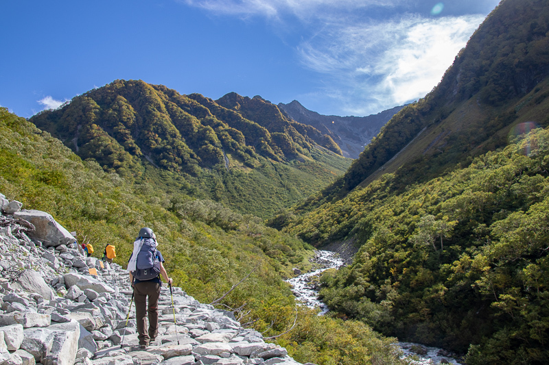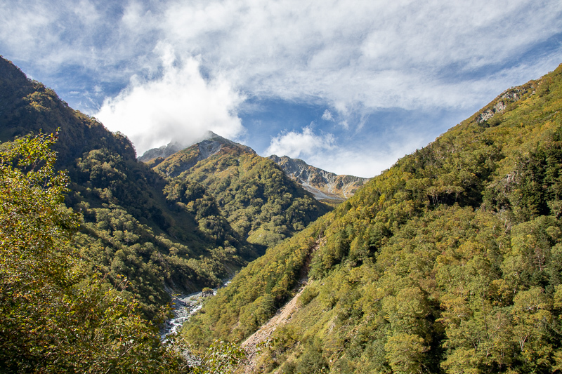 明神館を過ぎる頃、少しだけ空が明るくなり、徳沢では