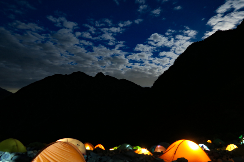 感動を分かち合う時間なんて無い、すぐにテン場を探し設営だ