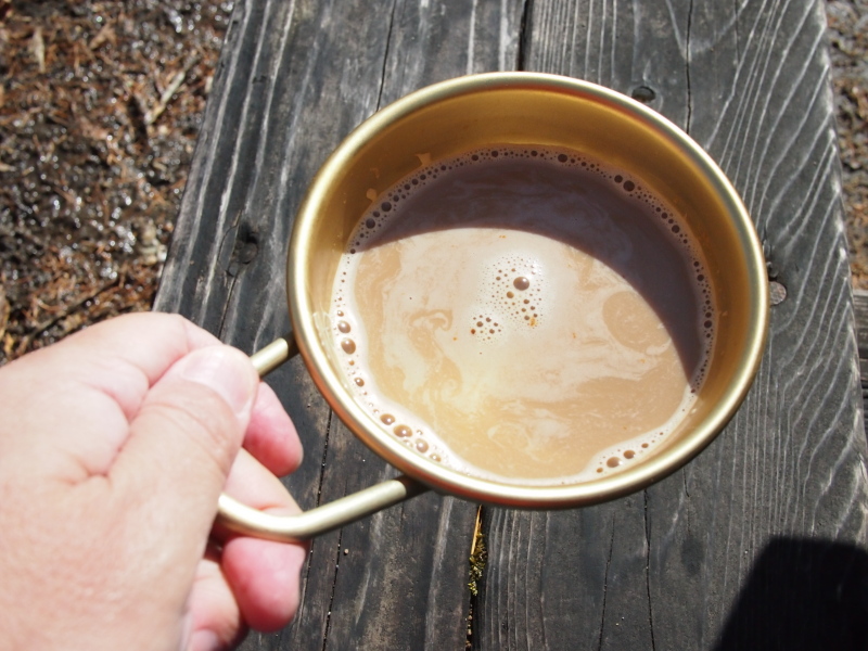 誰も居ない木道に腰を下ろし、暖かいコーヒーで一休み