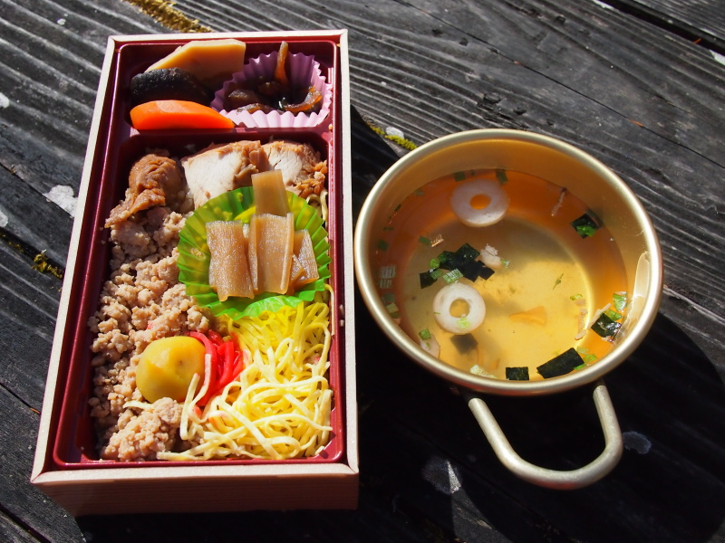 こんな眺めをサイドメニューに、陽だまりのベンチでお弁当
