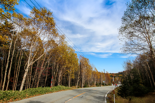 ワインディングロードは、高度を上げる度に紅葉トンネルとなる
