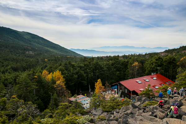 ゆるぅく登り詰め、静かな森に喧騒が聞こえ始めると、高見石小屋だ