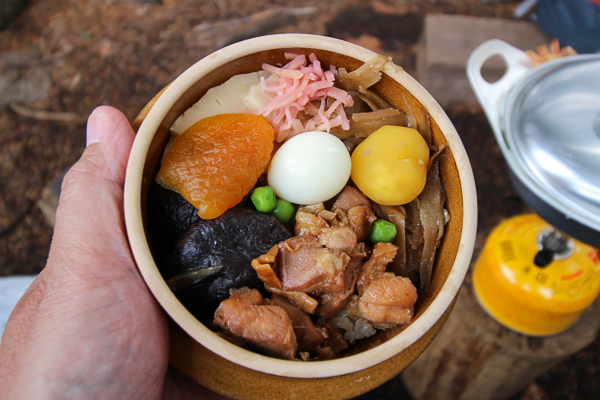 寝過ごしたため、ランチは横川SAでゲットした「峠の釜めし」だ