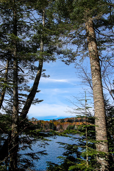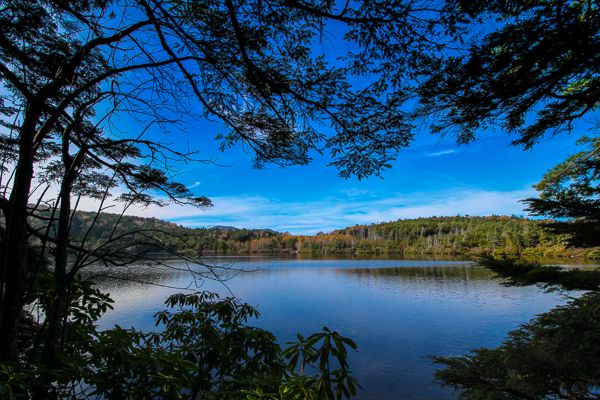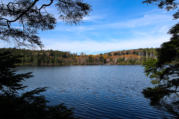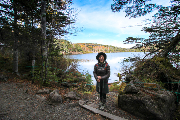 高見石から、白駒池へと下ると、湖面に紅葉が映えて