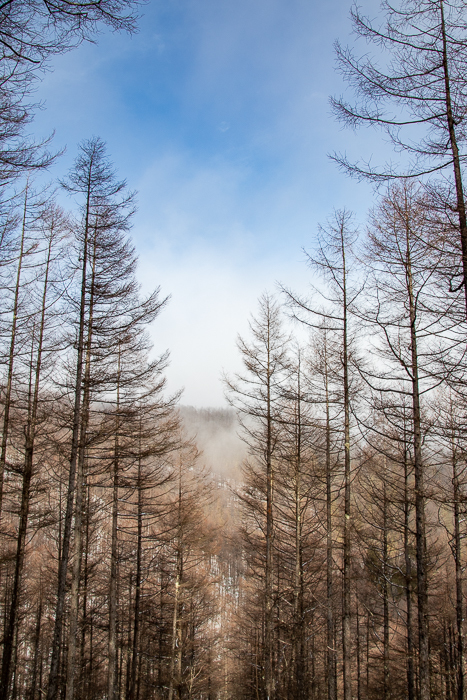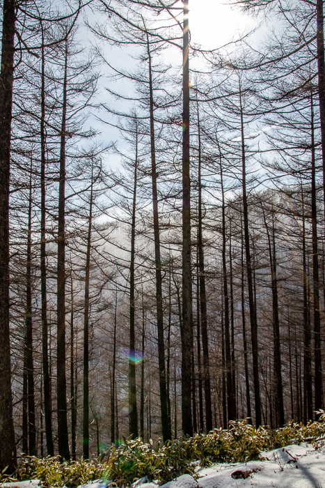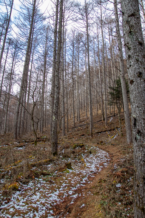 わしわしとカラマツ樹林を縫って登っていくと