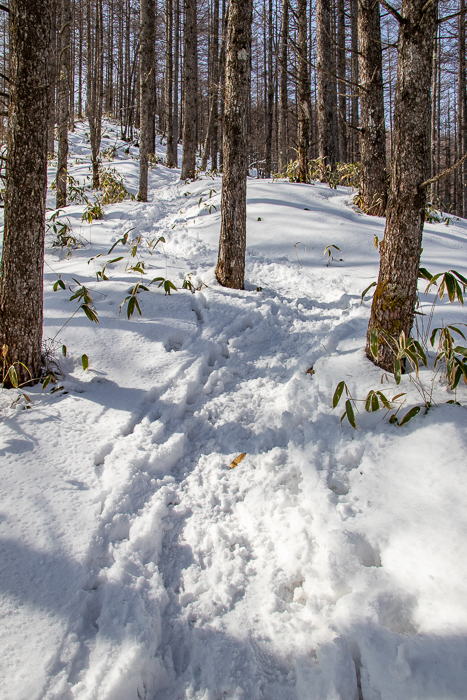 延々とカラマツ樹林を縫うように、ゆるやかに進む