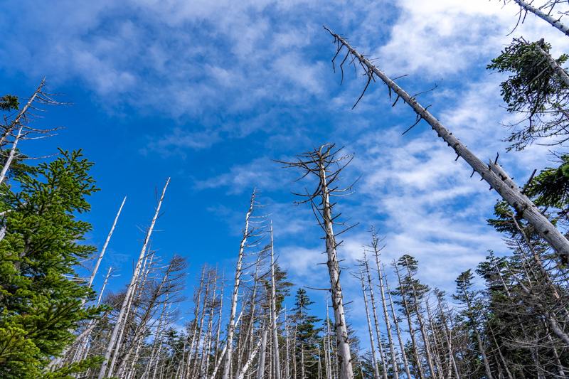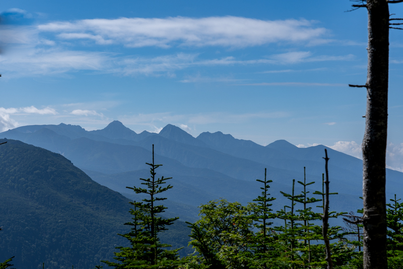 赤谷分岐を過ぎると縞枯れの向こう、突然南八ツの姿が現れた
