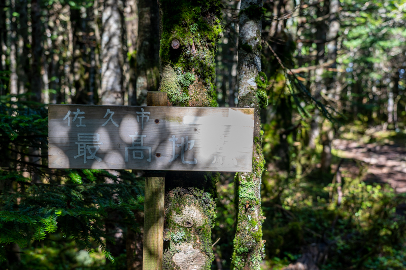 「佐久市最高地点」と、あまり意味を感じさせない道標を横目に