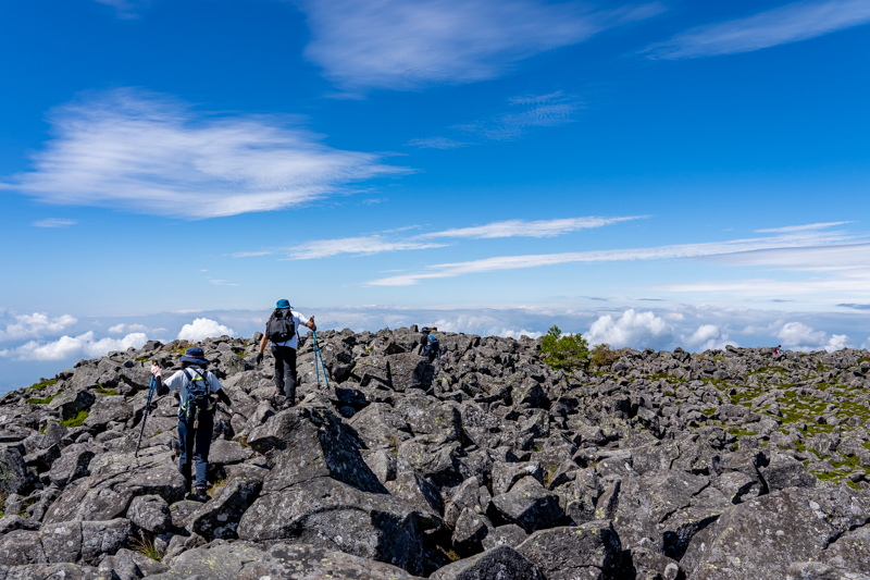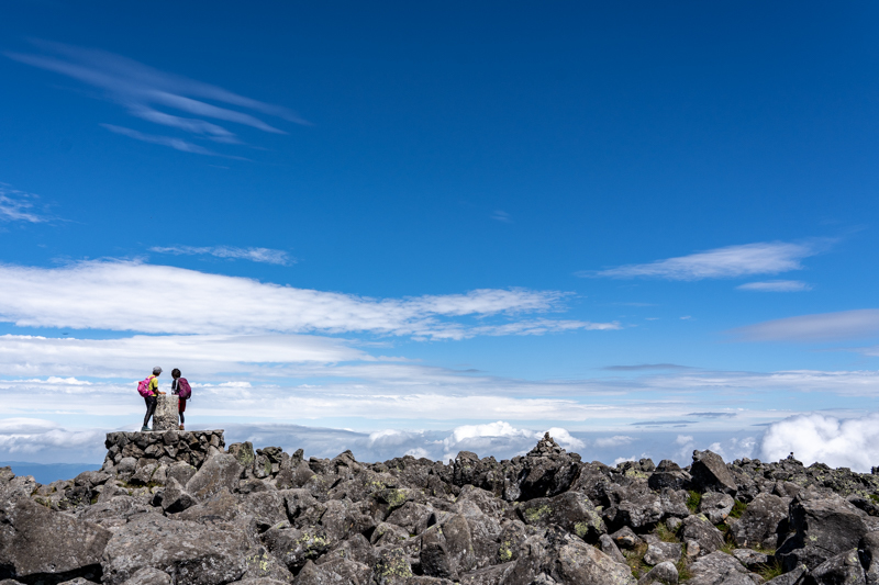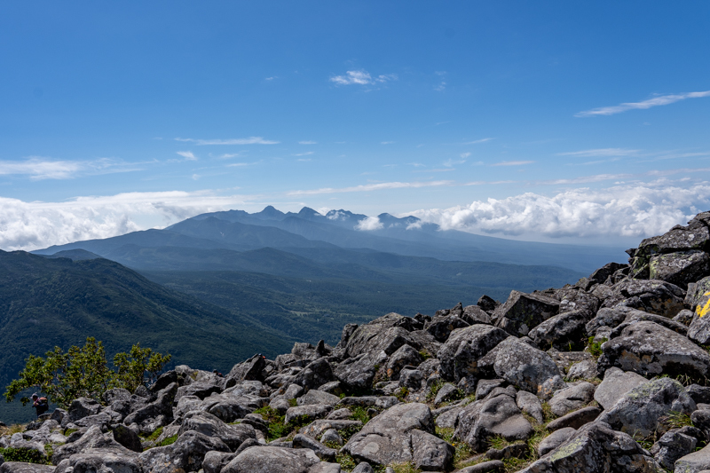 どんどん湧いて来る雲を眺めながら一気に食べ終えると下山開始
