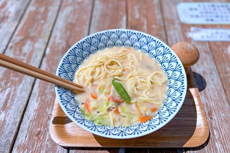 何やら美味しそうな湯気の丼を持つカップルの姿
