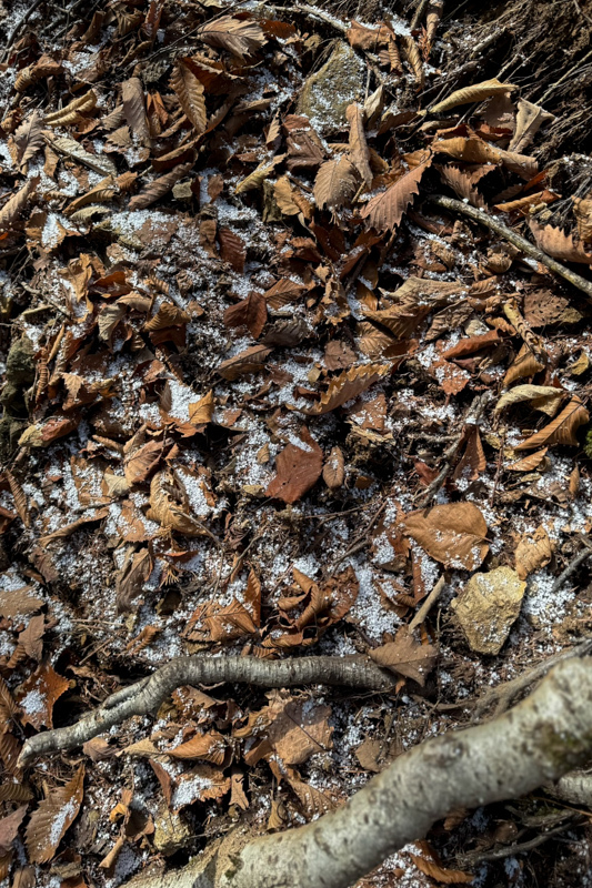 そこへ七ツ石山で、予報通りの小雪が舞いはじめ