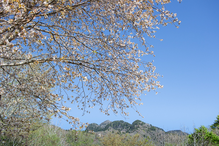 青空を背景に、山桜