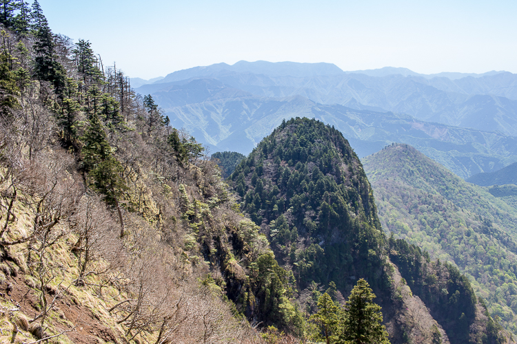 大峰の修験道に七十五ある靡(なびき)が連続し、二本岳のコルからは