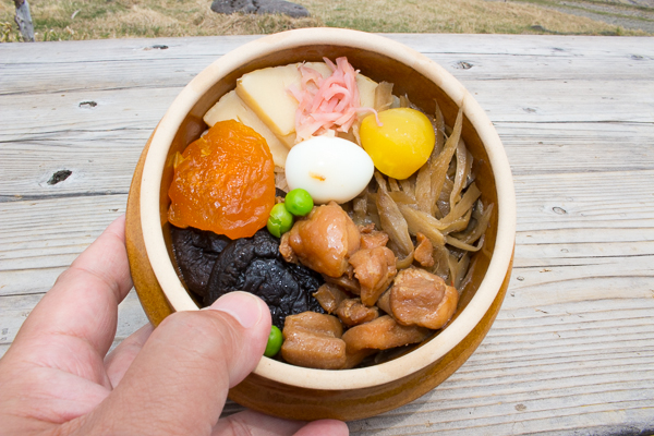 まさかの、「峠の釜めし」 そう、横川SAでゲットして担いで来たのだ