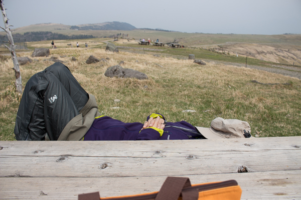 どうやら、ヨメさんのイビキを隣のベンチのカップルが笑ってるようだ