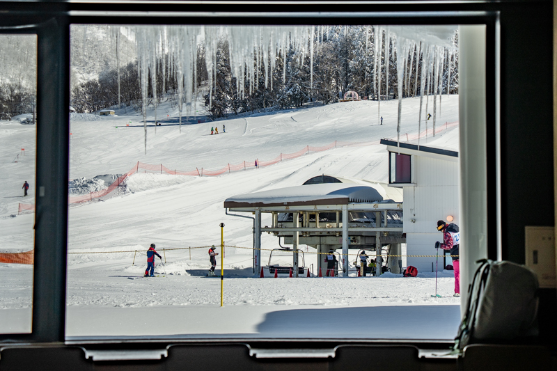 ゲレンデのレストハウスでコーヒーを頂いて一息入れると