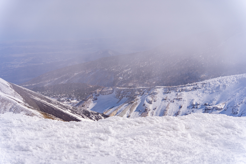 どうにかお釜は望めたが、突然暗くなった空からは強風が降りて来る