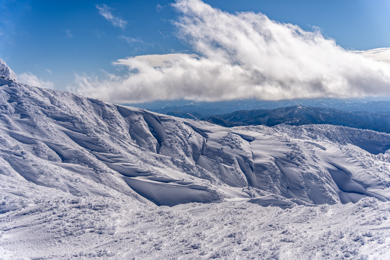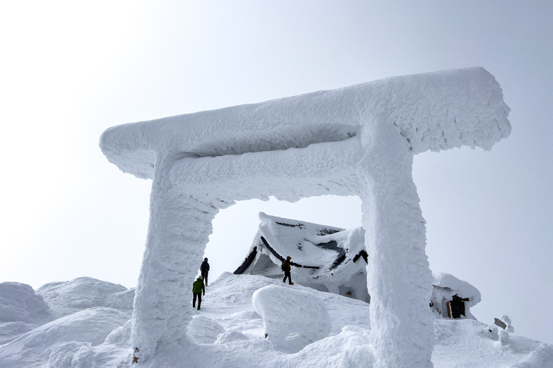 そこから地蔵岳へと登り返すと、もう雪の惑星ツアーも終わりだ