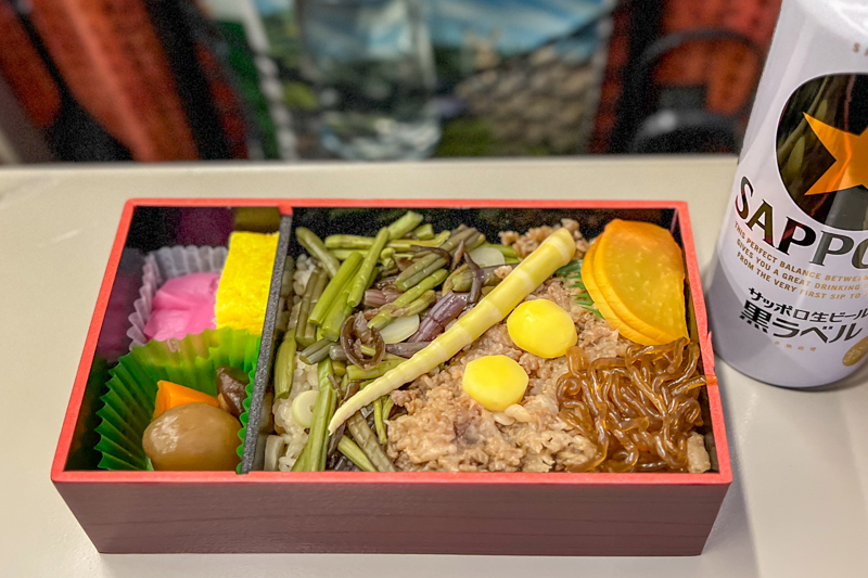 山形駅で缶ビールと駅弁「みちのく弁当の旅」を買い