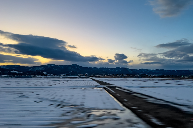 車窓に映る少し寂し気な東北の夕景に乾杯した