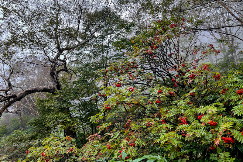 雨に煙る紅葉の景色も、それはそれで悪くないし