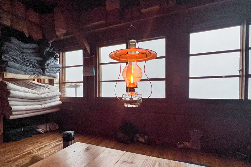 ランプが灯され、薪ストーブの香り漂う小屋の中にいれば心地好きBGM