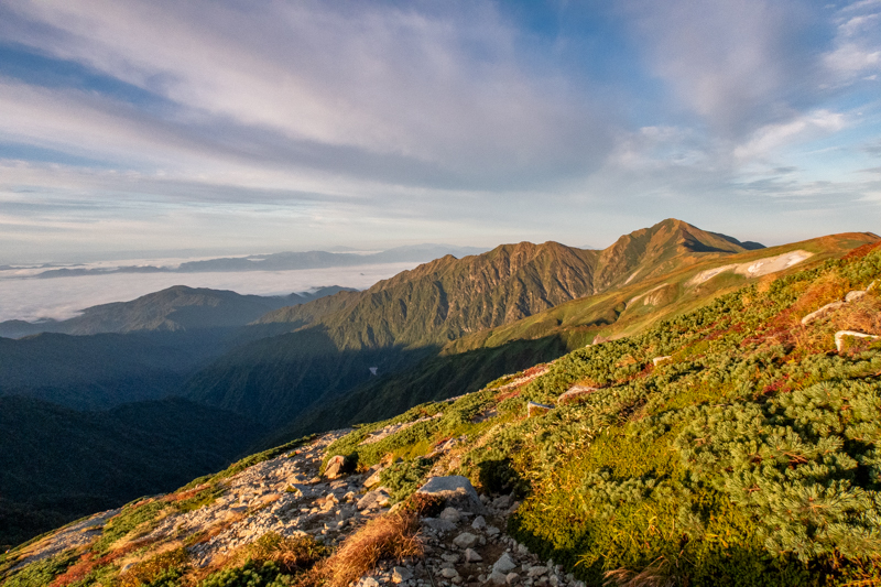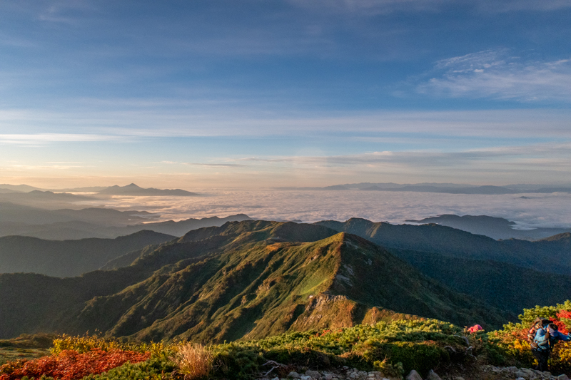 いくつめかの小ピークから見下ろすと、西方向にも雲海が湧き上がっていた