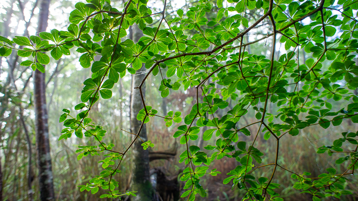 静かな森を一人彷徨い歩く
