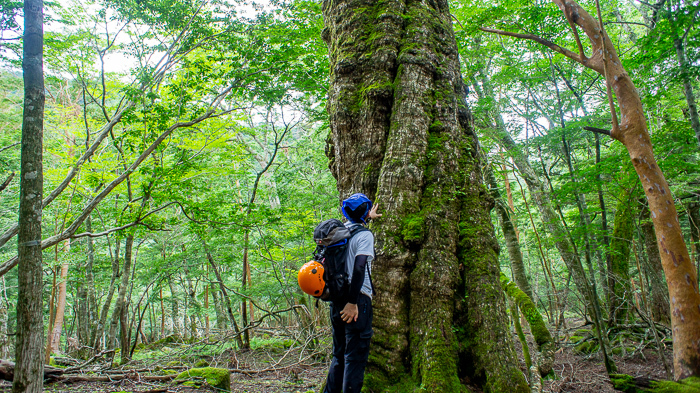 もの言わぬ千年樹に別れを告げて、1年ぶりの沢に下るとシューズを履き替えた