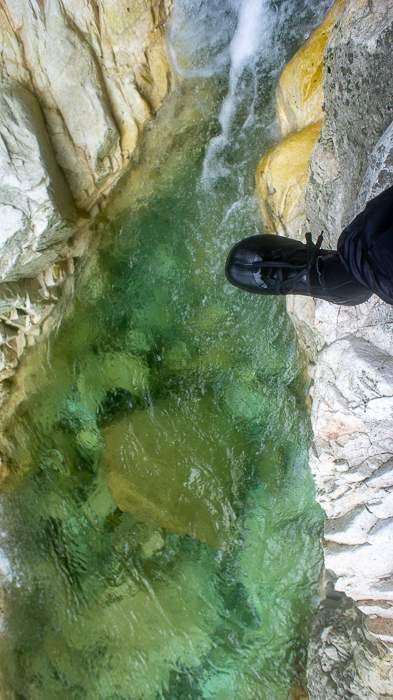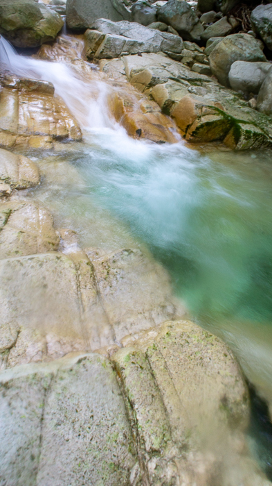 ナメの連続する箇所を過ぎると、適当に左岸に取り付き、山靴に履き替える