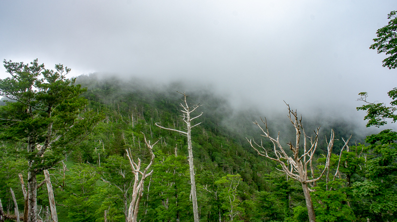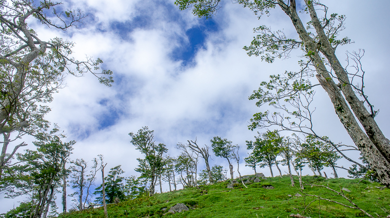 吉田の森を過ぎる頃、一気にガスが消え去り、南には夏の青空が覗いたけれど