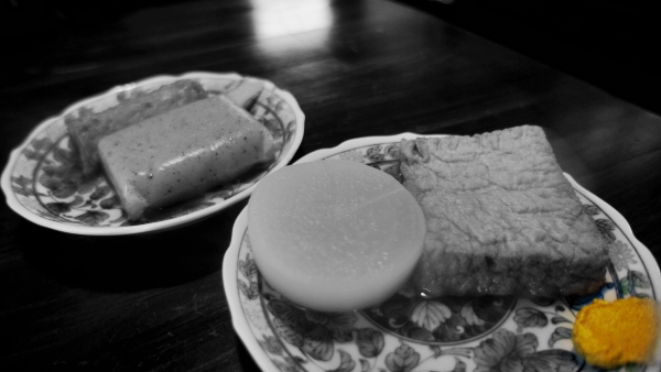 えーっと、先ずはビアやな、あ、おでんもらお?おでん、くーっ、この寒い日に冷たいビアたまらん!