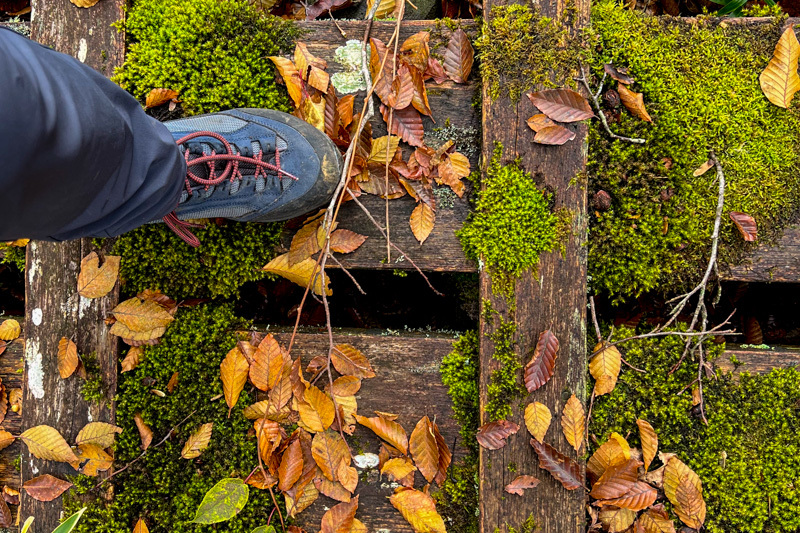 トレイルはいつの間にか木製階段となり、やがてフラットな木道へ変わり