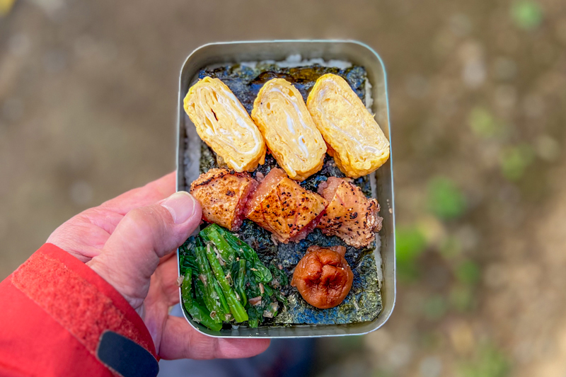 4時に起きてこさえたお弁当を食べてると、一瞬空が光った