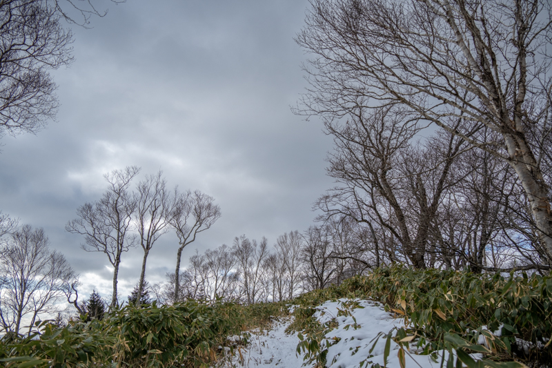 そんな急登は歩きずらく、いきなり汗をかく、師走の北海道で汗だ