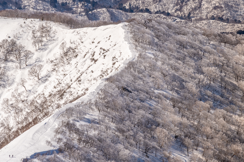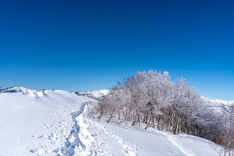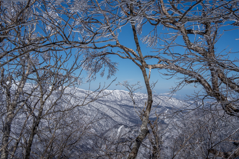 霧氷の梢が風に揺られては、はらはらと舞い落ちる