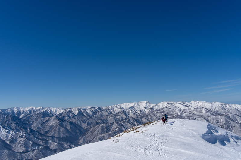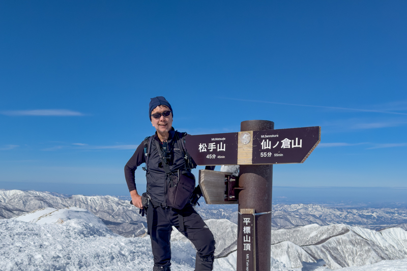前日土曜に平標山乃家避難小屋で夜を過ごし、2/18日曜の早朝5時半に平標山頂を経て仙ノ倉山で日の出を迎えました。