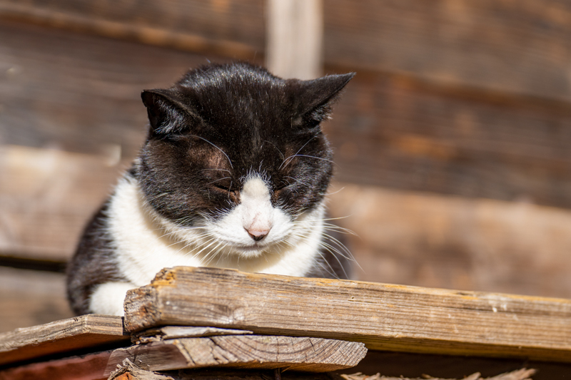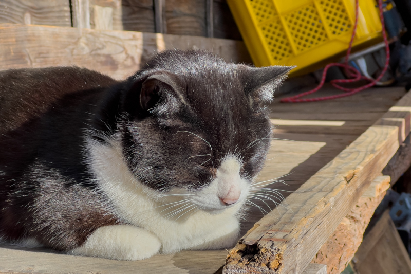七ツ石小屋のヌシであるニャンコ、微動だにせず陽だまりの中