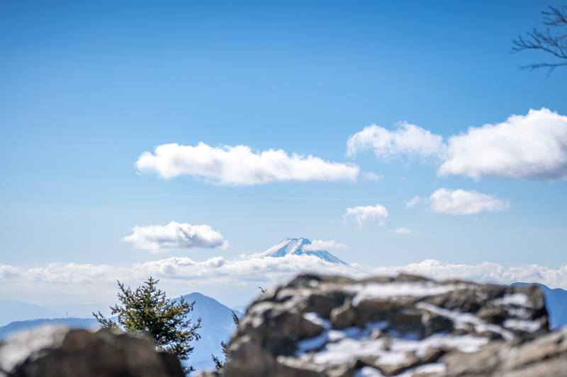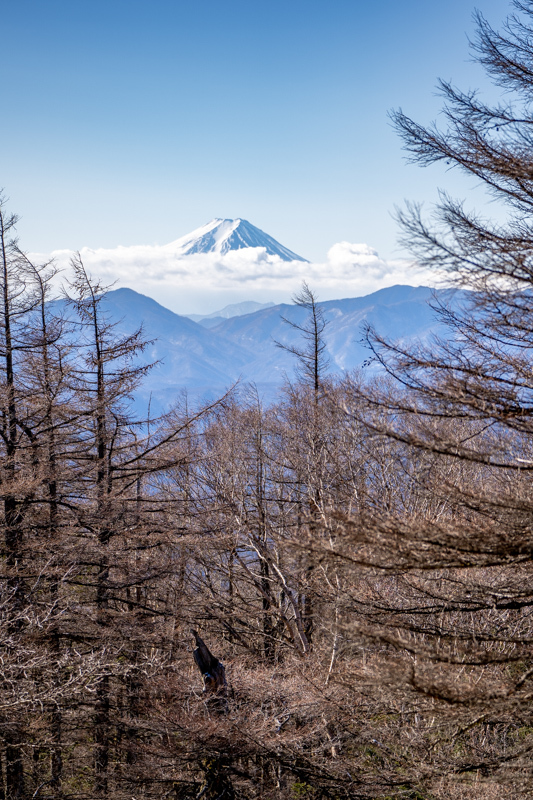 マムシ岩を過ぎると七ツ石尾根の向こう、今日も富士山が浮かぶと