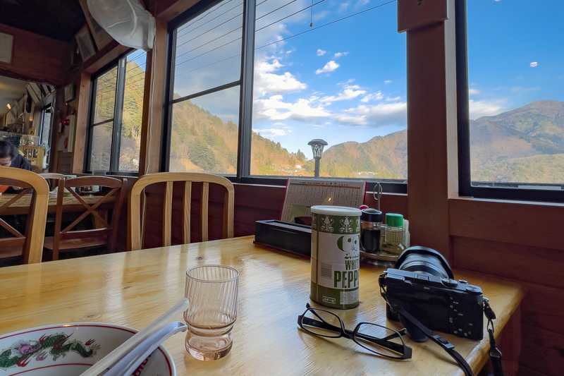 夏と同じ中華そば麦を頂くと、窓からの景色はもう春めいていて