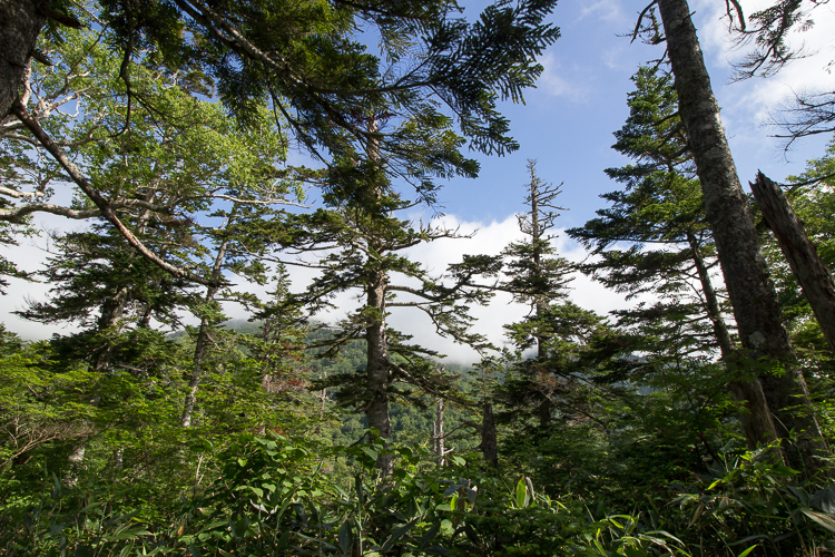 樹木がシラビソ、トウヒ、コメツガに変わる