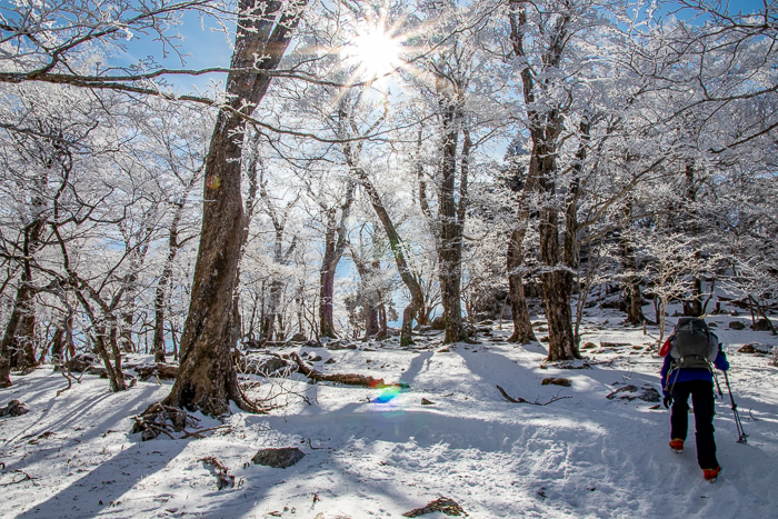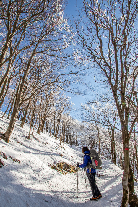 水場を過ぎた辺りから、一気に霧氷の花が咲き始めた
