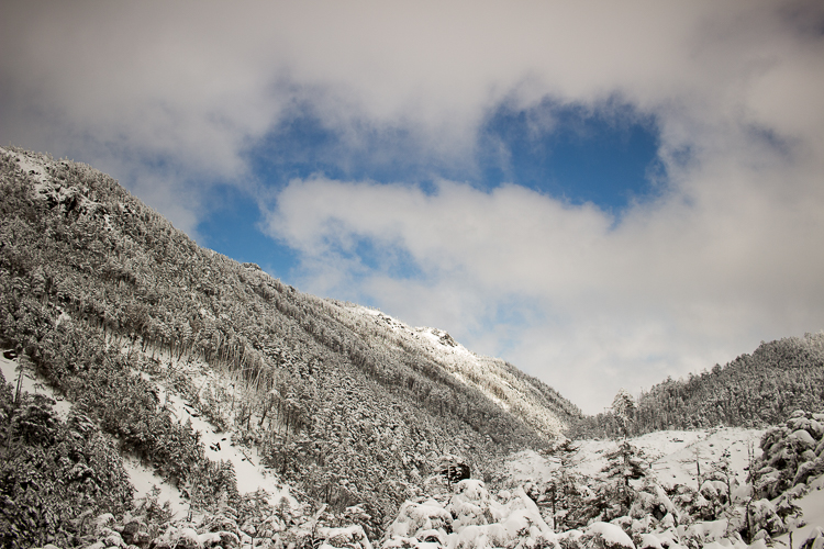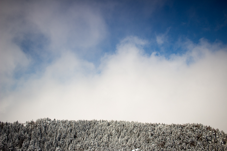 雪雲の去ったあと、下から沸いてきたガスが千切れては流れて行く