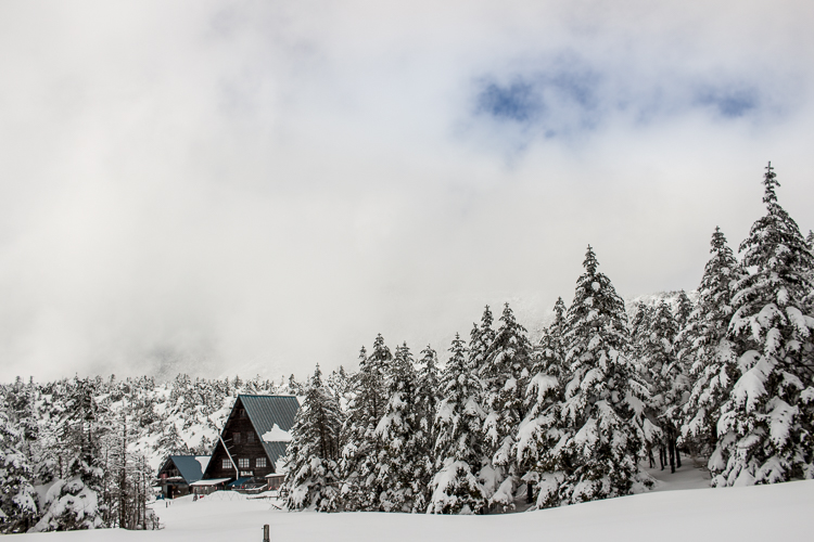山荘まで下るけれど、雪雲は居座ったまま